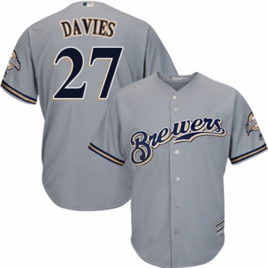 >Youth Majestic Milwaukee Brewers #27 Zach Davies Authentic Grey Road Cool Base MLB Jersey