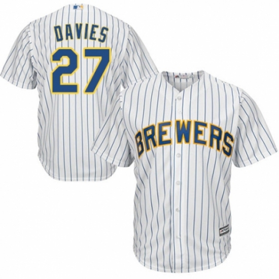 Men's Majestic Milwaukee Brewers #27 Zach Davies White Home Flex Base Authentic Collection MLB Jersey