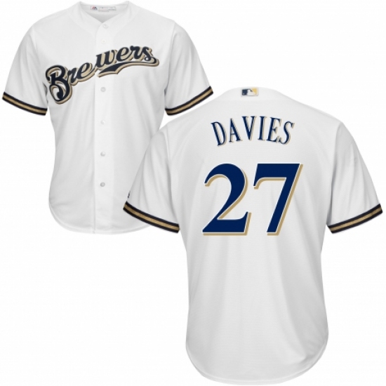 Youth Majestic Milwaukee Brewers #27 Zach Davies Authentic White Alternate Cool Base MLB Jersey