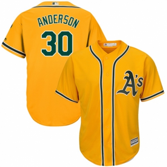 >Youth Majestic Oakland Athletics #30 Brett Anderson Replica Gold Alternate 2 Cool Base MLB Jersey