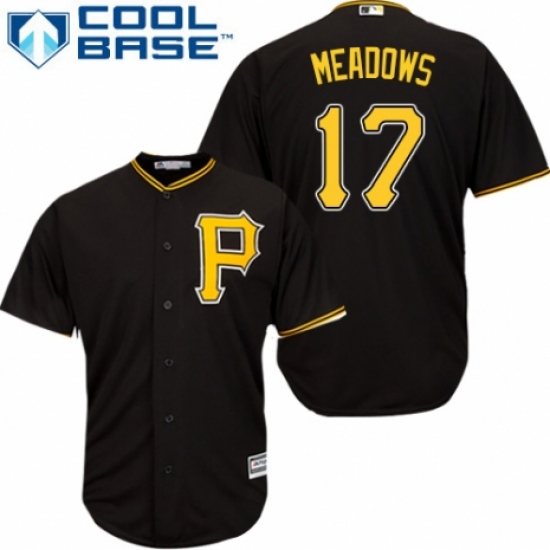 >Youth Majestic Pittsburgh Pirates #17 Austin Meadows Authentic Black Alternate Cool Base MLB Jersey