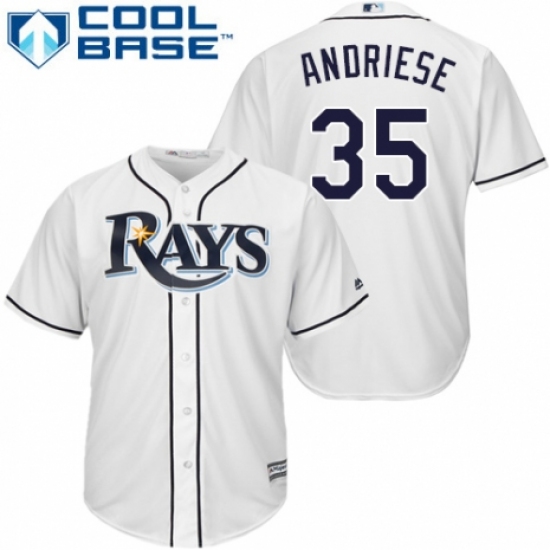 >Youth Majestic Tampa Bay Rays #35 Matt Andriese Replica White Home Cool Base MLB Jersey