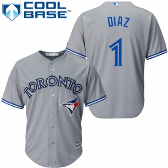 >Youth Majestic Toronto Blue Jays #1 Aledmys Diaz Replica Grey Road MLB Jersey