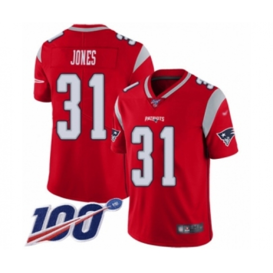>Youth New England Patriots #31 Jonathan Jones Limited Red Inverted Legend 100th Season Football Jersey