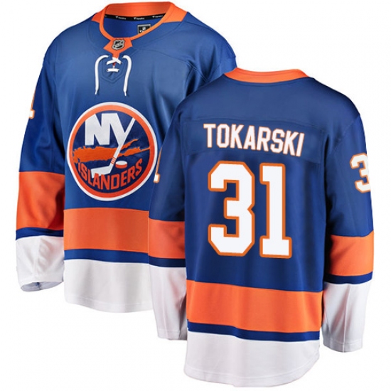 >Youth New York Islanders #31 Dustin Tokarski Fanatics Branded Royal Blue Home Breakaway NHL Jersey