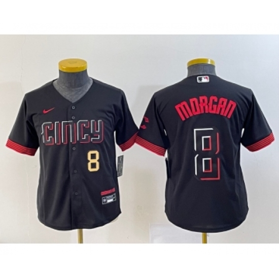 Youth Nike Cincinnati Reds #8 Joe Morgan Black 2023 City Connect Cool Base Stitched Jersey 1