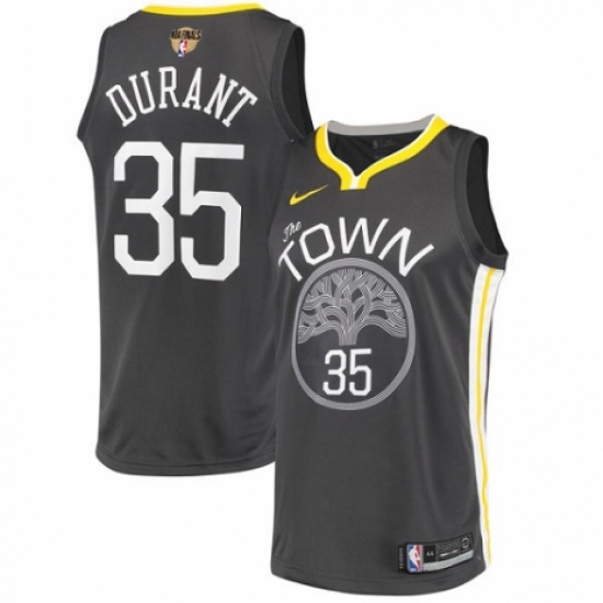 >Youth Nike Golden State Warriors #35 Kevin Durant Swingman Black Alternate 2018 NBA Finals Bound NBA Jersey - Statement Edition
