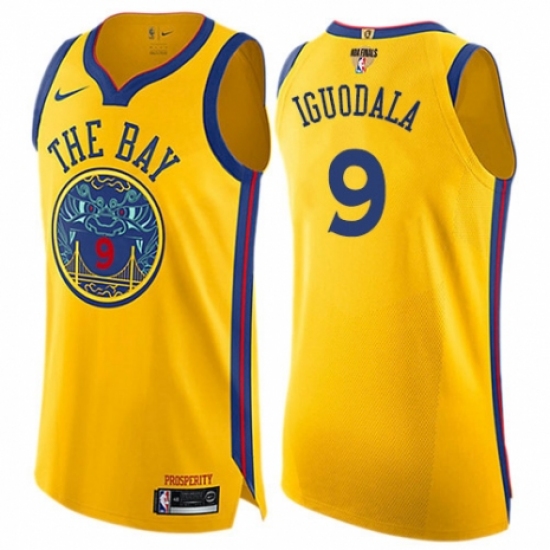 Men's Nike Golden State Warriors #9 Andre Iguodala Authentic Gold 2018 NBA Finals Bound NBA Jersey - City Edition