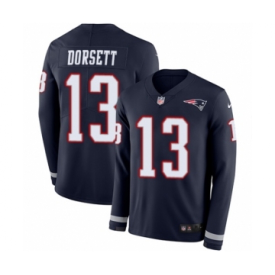 Men's Nike New England Patriots #13 Phillip Dorsett Limited Navy Blue Therma Long Sleeve NFL Jersey