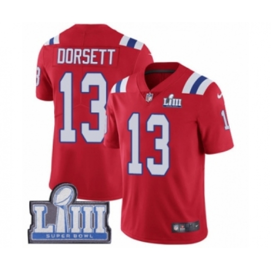 >Youth Nike New England Patriots #13 Phillip Dorsett Red Alternate Vapor Untouchable Limited Player Super Bowl LIII Bound NFL Jersey