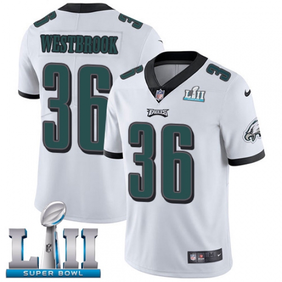 >Youth Nike Philadelphia Eagles #36 Brian Westbrook White Vapor Untouchable Limited Player Super Bowl LII NFL Jersey
