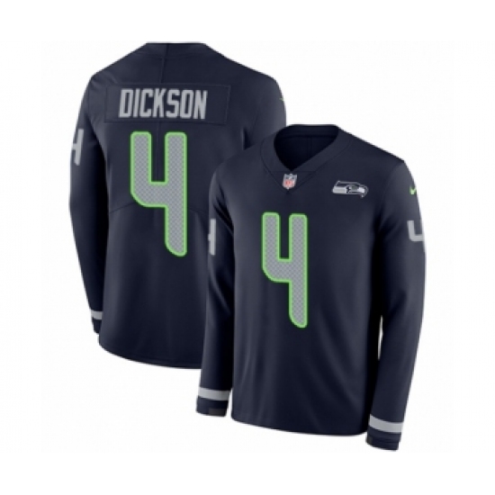 >Youth Nike Seattle Seahawks #4 Michael Dickson Limited Navy Blue Therma Long Sleeve NFL Jersey