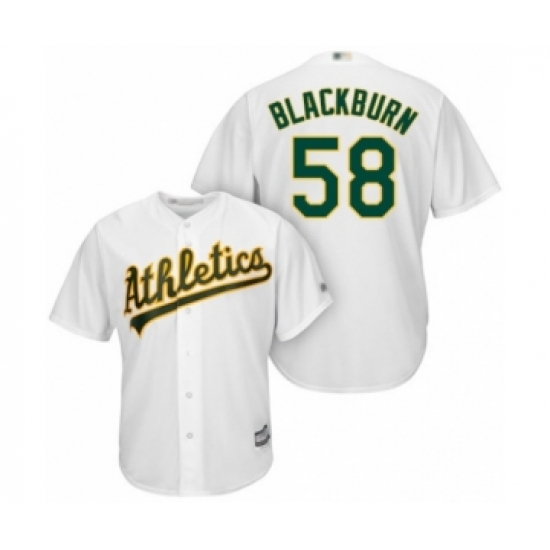 Men's Oakland Athletics #58 Paul Blackburn White Home Flex Base Authentic Collection Baseball Player Jersey