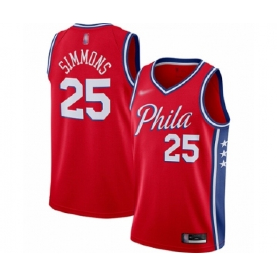 Youth Philadelphia 76ers #25 Ben Simmons Swingman Red Finished Basketball Jersey - Statement Edition