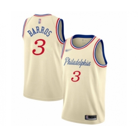Men's Philadelphia 76ers #3 Dana Barros Swingman Cream Basketball Jersey - 2019 20 City Edition