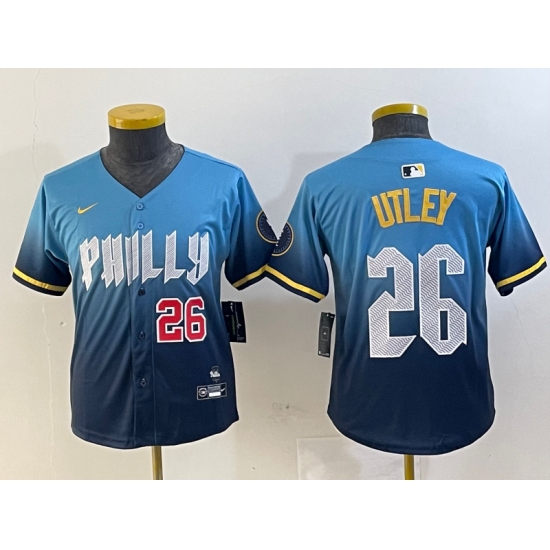 Youth Philadelphia Phillies #26 Chase Utley Blue 2024 City Connect Limited Stitched Jersey