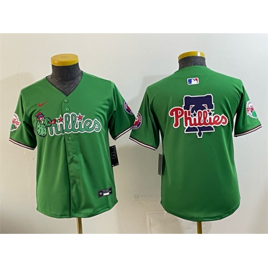 >Youth Philadelphia Phillies Team Big Logo Green Phanatic Limited Stitched Jersey