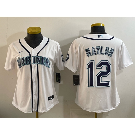 Women's Seattle Mariners #12 Josh Naylor White Cool Base Stitched Baseball Jersey(Run Small)