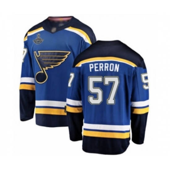 >Youth St. Louis Blues #57 David Perron Fanatics Branded Royal Blue Home Breakaway 2019 Stanley Cup Champions Hockey Jersey