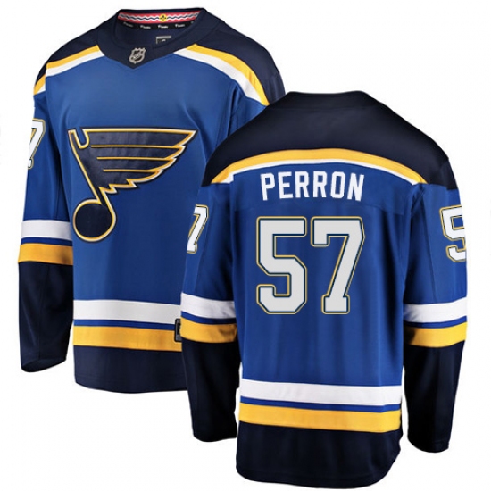 >Youth St. Louis Blues #57 David Perron Fanatics Branded Royal Blue Home Breakaway NHL Jersey