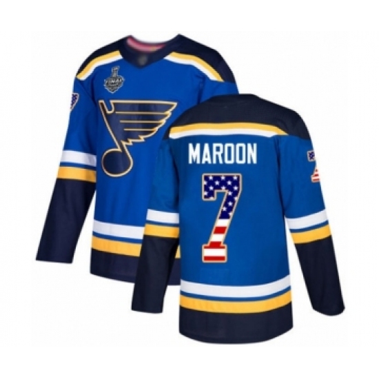 Youth St. Louis Blues #7 Patrick Maroon Authentic Blue USA Flag Fashion 2019 Stanley Cup Final Bound Hockey Jersey