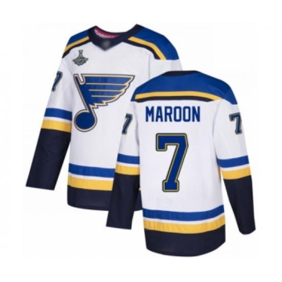 Youth St. Louis Blues #7 Patrick Maroon Authentic White Away 2019 Stanley Cup Champions Hockey Jersey