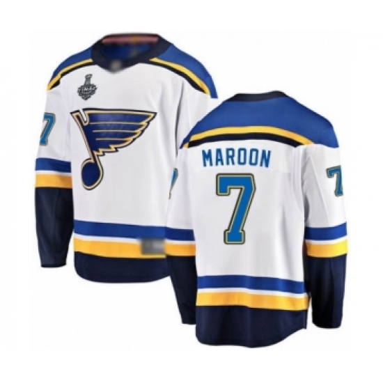 Men's St. Louis Blues #7 Patrick Maroon Fanatics Branded White Away Breakaway 2019 Stanley Cup Final Bound Hockey Jersey