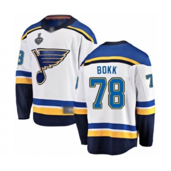 >Youth St. Louis Blues #78 Dominik Bokk Fanatics Branded White Away Breakaway 2019 Stanley Cup Final Bound Hockey Jersey