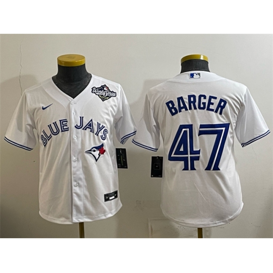 Youth Toronto Blue Jays #47 Addison Barger White 2025 World Series Cool Base Stitched Baseball Jersey