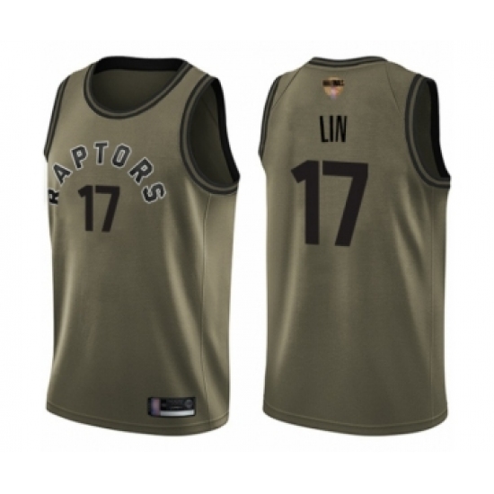 >Youth Toronto Raptors #17 Jeremy Lin Swingman Green Salute to Service 2019 Basketball Finals Bound Jersey