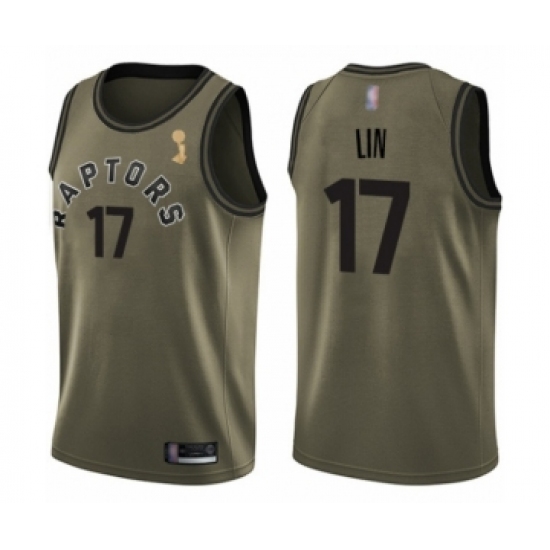 Men's Toronto Raptors #17 Jeremy Lin Swingman Green Salute to Service 2019 Basketball Finals Bound Jersey