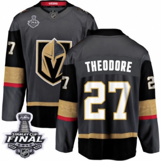 Youth Vegas Golden Knights #27 Shea Theodore Authentic Black Home Fanatics Branded Breakaway 2018 Stanley Cup Final NHL Jersey