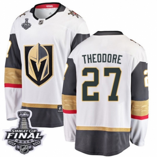 >Youth Vegas Golden Knights #27 Shea Theodore Authentic White Away Fanatics Branded Breakaway 2018 Stanley Cup Final NHL Jersey