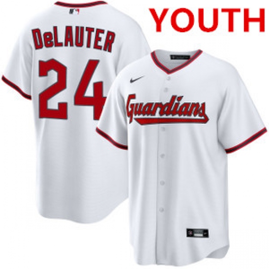 >Youth cleveland guardians #24 chase delauter white cool base limited stitched baseball jersey