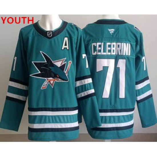 >Youth san jose sharks #71 macklin celebrini teal authentic jersey