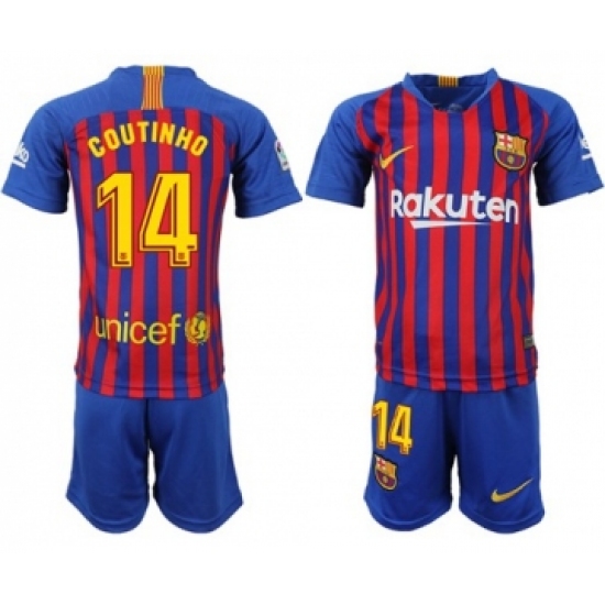 Barcelona #14 Coutinho Home Kid Soccer Club Jersey