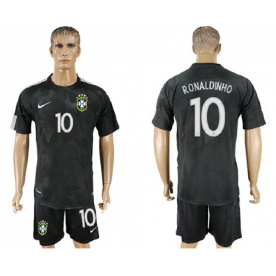 Brazil #10 Ronaldinho Black Soccer Country Jersey