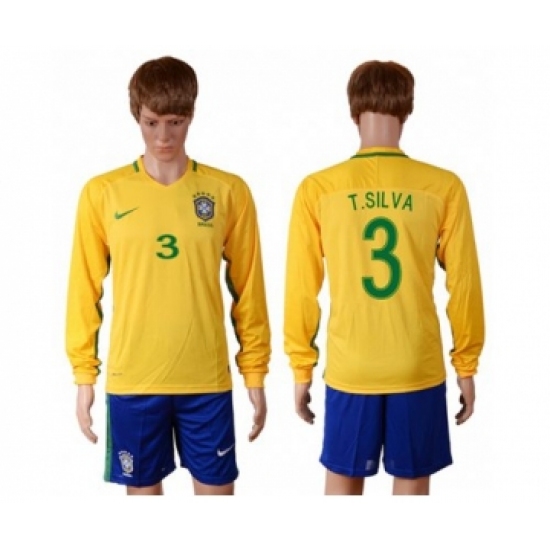 Brazil #3 T.Silva Home Long Sleeves Soccer Country Jersey