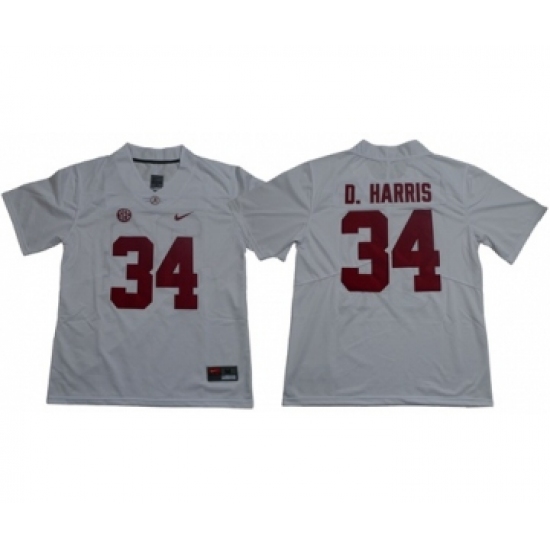 >Crimson Tide #34 Damien Harris White Limited Stitched NCAA Jersey