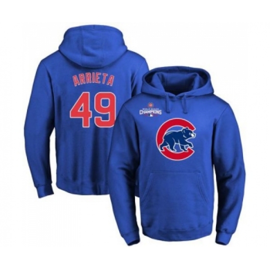 >Cubs #49 Jake Arrieta Blue 2016 World Series Champions Primary Logo Pullover MLB Hoodie
