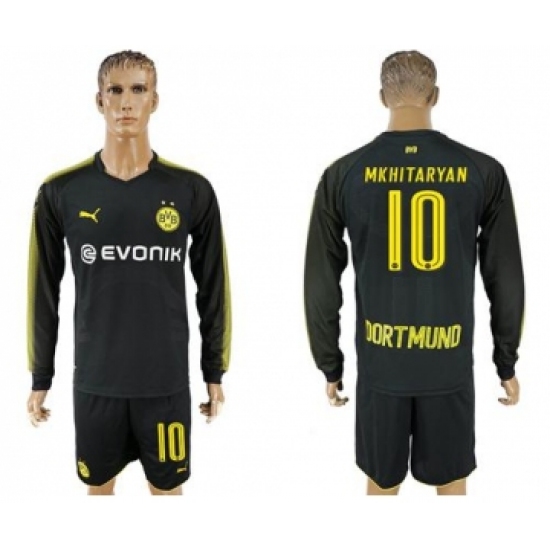 >Dortmund #10 Mkhitaryan Away Long Sleeves Soccer Club Jersey