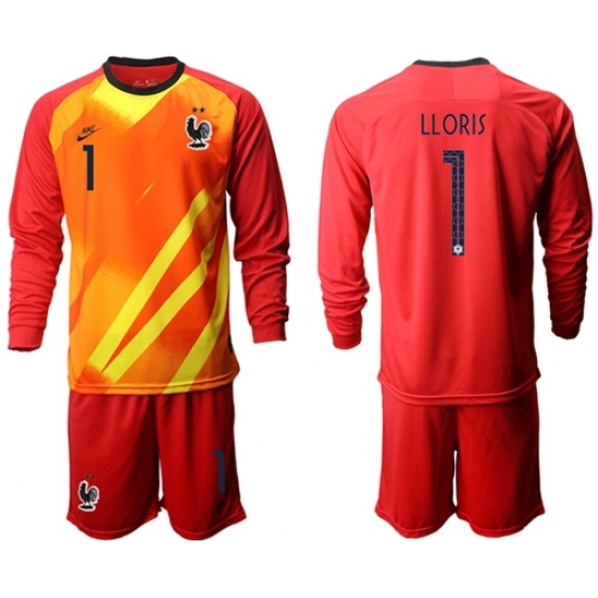 >France #1 LLORIS Red Goalkeeper Long Sleeves Soccer Country Jersey