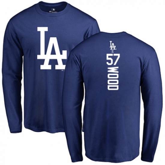 >MLB Nike Los Angeles Dodgers #57 Alex Wood Royal Blue Backer Long Sleeve T-Shirt
