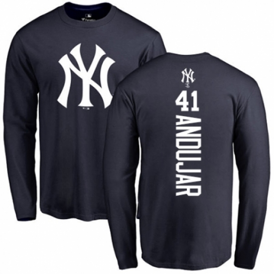 >MLB Nike New York Yankees #41 Miguel Andujar Navy Blue Backer Long Sleeve T-Shirt