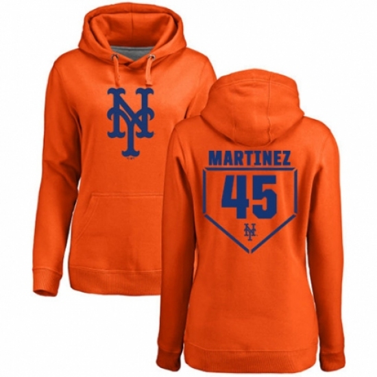 MLB Women's Nike New York Mets #45 Pedro Martinez Orange RBI Pullover Hoodie