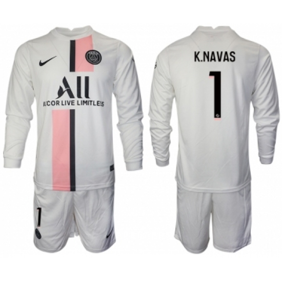 >Men 2021-2022 Club Paris St German away white Long Sleeve 1 Soccer Jersey