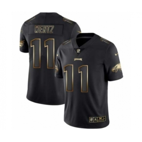 Men Philadelphia Eagles #11 Carson Wentz Black Golden Edition 2019 Vapor Untouchable Limited Jersey