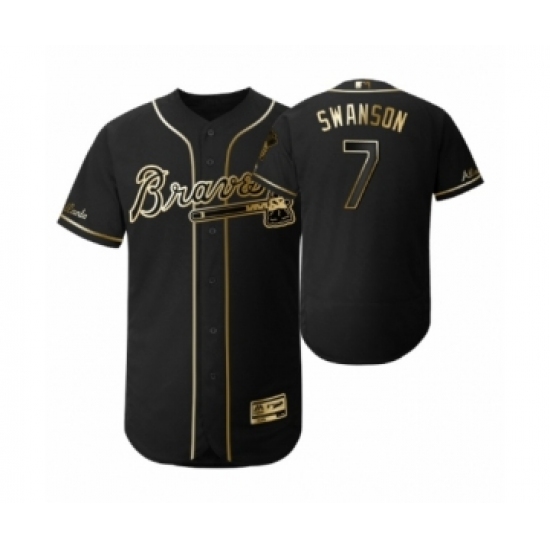 Men's 2019 Golden Edition Atlanta Braves Black #7 Dansby Swanson Flex Base Jersey