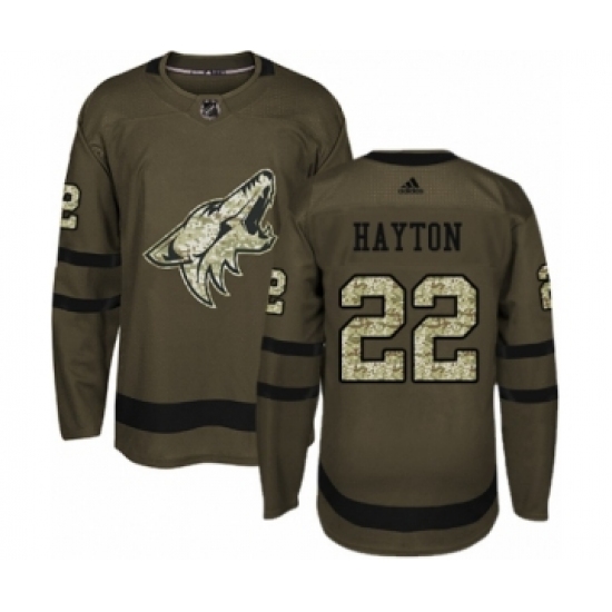 >Men's Adidas Arizona Coyotes #22 Barrett Hayton Authentic Green Salute to Service NHL Jersey