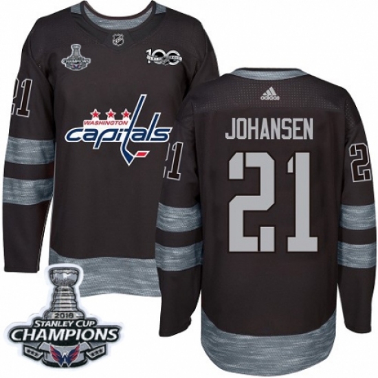 Men's Adidas Washington Capitals #21 Lucas Johansen Authentic Black 1917-2017 100th Anniversary 2018 Stanley Cup Final Champions NHL Jersey